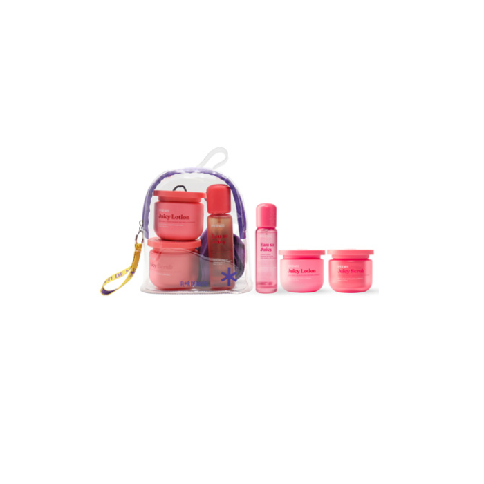 Il Mind & Body Glow Juicy Set è concepito come un'esperienza completa di cura di sé: comprende una lozione per il corpo, uno scrub per il corpo e un profumo per capelli e corpo, tre prodotti essenziali per idratare, lenire e profumare la pelle con un tocco di freschezza.