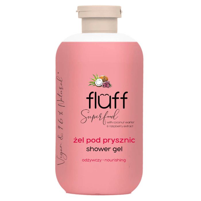 Fluff Gel Doccia Coco e Lampone Il gel doccia nutriente arricchito con sorbitolo, pantenolo e glicerina non solo idrata e deterge, ma si prende anche cura della pelle. Grazie agli estratti di cocco e lampone, che rigenerano, migliorano l’aspetto della pelle e hanno un’azione lenitiva.