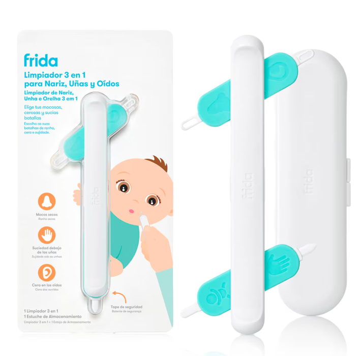 Il pulitore 3 in 1 di FRIDA è la soluzione pratica e completa per mantenere pulito il bambino in tutta sicurezza. Progettato per rimuovere delicatamente lo sporco dai punti più difficili da raggiungere, la sua forma ergonomica e le punte specializzate facilitano la pulizia quotidiana dei genitori.