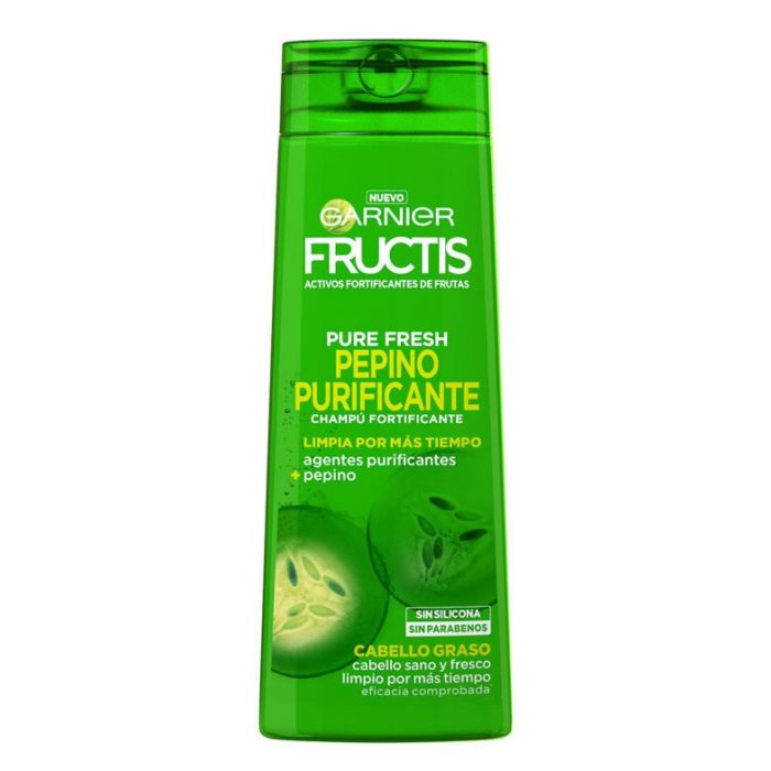 Lo shampoo Pure Fresh Fructis combina nella sua formula priva di silicone agenti purificanti per rinforzare la fibra dopo ogni applicazione, purificare il cuoio capelluto e idratare le lunghezze e le punte.