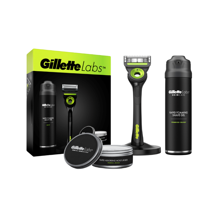 Regalate una rasatura senza sforzo in un solo colpo con il rasoio Gillette Labs con striscia esfoliante. La striscia esfoliante davanti alle lame aiuta a rimuovere i residui prima delle lame. L'idratante per la pelle Gillette Labs ha una formula idratante che aiuta a rafforzare la barriera di idratazione nel tempo. Il pack include un supporto magnetico per mantenere il rasoio pulito e asciutto.