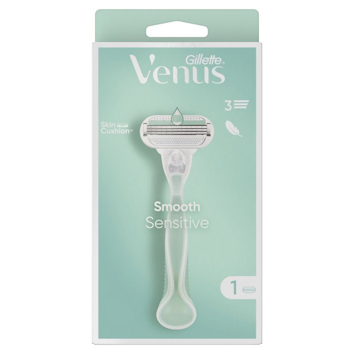 Gillette Smooth Sensitive Venus è Gillettedotato di cuscinetti protettivi nell’area di contatto per una depilazione delicata e ultra-accurata.