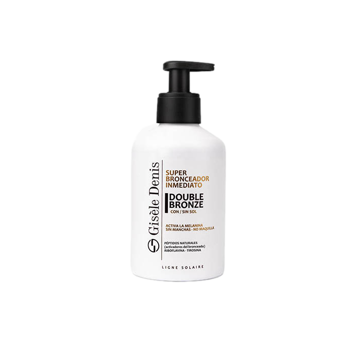 Gisèle Denis Double Bronze Immediate Super Tanner genera ed esalta l'abbronzatura in modo naturale, fornendo un tono sano e uniforme grazie alla sua formula innovativa che esercita una doppia azione sui melanociti.