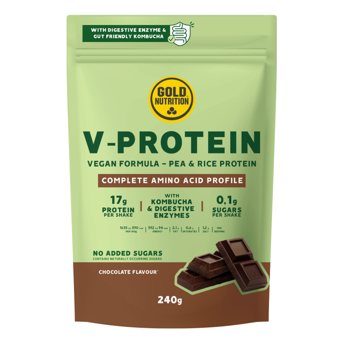 V-protein combina proteine di piselli, ricche di amminoacidi ramificati e glutammina, e la proteina di riso è stata aggiunta a una miscela brevettata di 29 verdure, frutta e piante chiamate Spectra® che aiutano a bilanciare il PH del corpo a causa del suo potenziale alcalino.