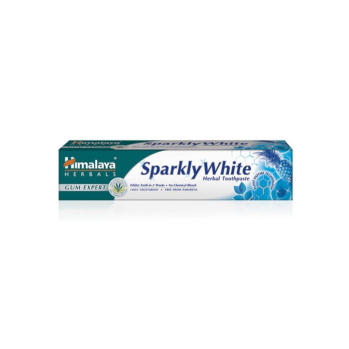 Il dentifricio bianco brillante Himalaya  a base di erbe ha una formula innovativa con enzimi originari della papaia e dell’ananas, che rimuove delicatamente le macchie superficiali dei denti in sole due settimane, lasciandoli più bianchi.