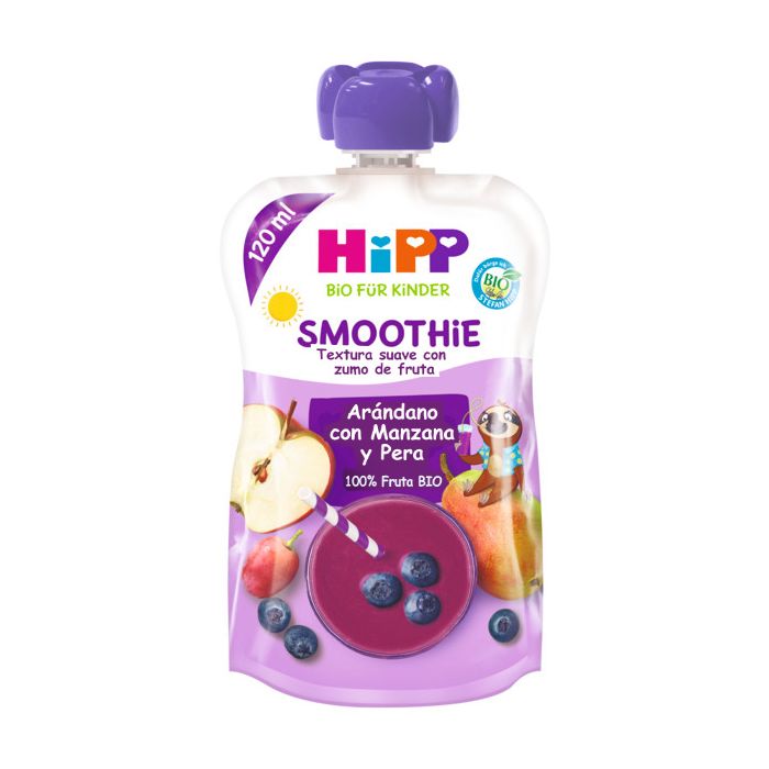 La busta Smoothie di HiPP è ideale per i bambini di età superiore ai 12 mesi e offre una consistenza morbida grazie al succo di frutta bio.