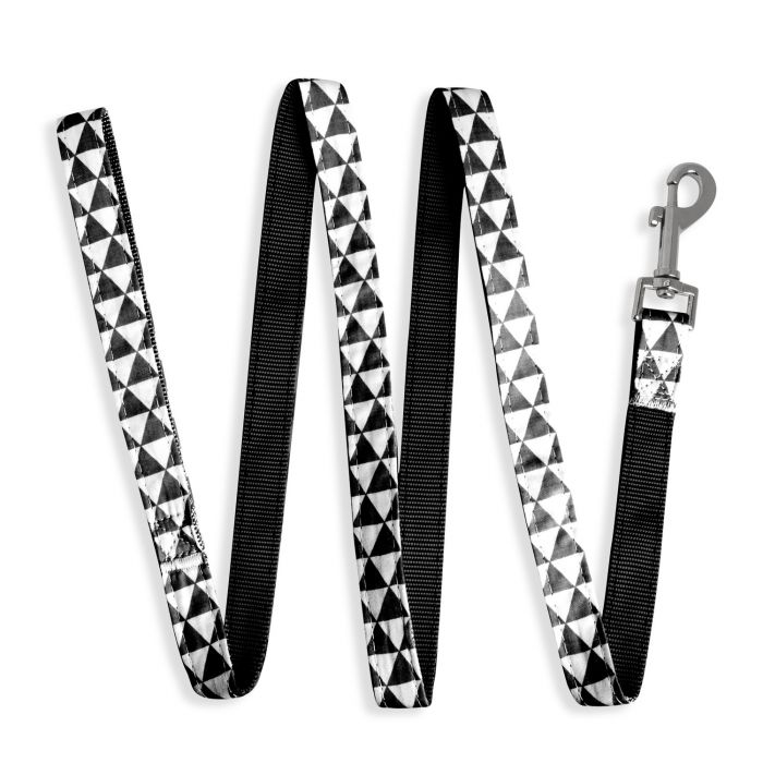 Cinghia in cotone e nylon con moschettone realizzato in una lega di zinco cromata argento, molto resistente.