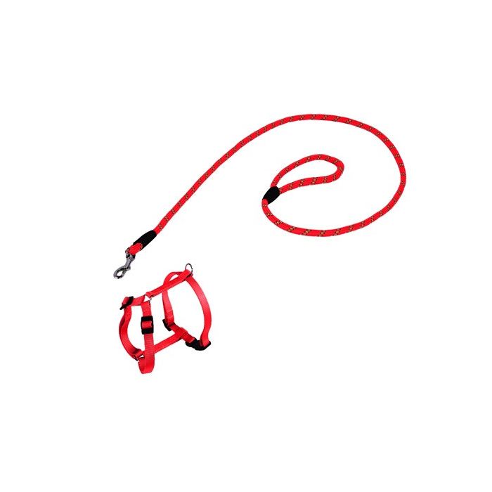 Misure largo de la correa 127cm y arnés tamaño mediano.