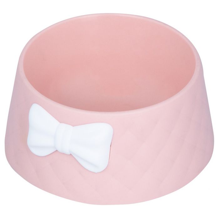 Vasca da pranzo trapuntata rosa con fiocco decorativo.