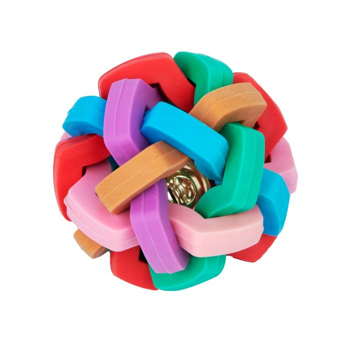 Questa pallina in gomma con nodi e un cascabel all'interno è una una pallina accattivante che puoi dare al tuo cane per intrattenerlo giocando.