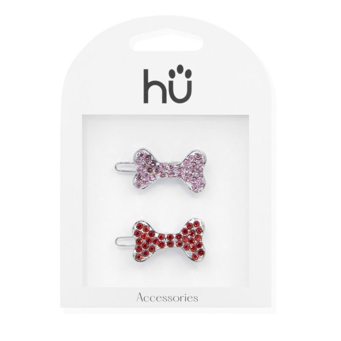 Gli accessori più scimmie! Set 2 pinzette in strass rosa e rosso a forma di ossa. Sono gli accessori perfetti per decorare i capelli del tuo animale domestico.