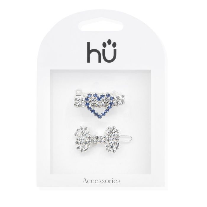 Gli accessori più scimmie! Set 2 pinzette di strass. A forma di osso e cuore, sono gli accessori perfetti per decorare i capelli del tuo animale domestico.