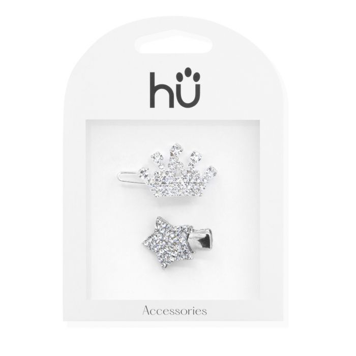 Gli accessori più belli! Set 2 pinzette di strass. A forma di stella e corona, sono gli accessori perfetti per decorare i capelli del tuo animale domestico.