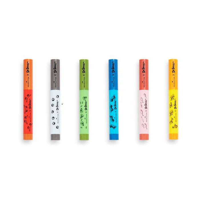 La collezione di matite occhi Dr. Seuss di Heart Revolution comprende 6 matite colorate cremose e metallizzate. Basta far scorrere la matita sulle palpebre e sfumarla con le dita o con un pennello. Oppure, se vi sentite un po' creative, usatele sul viso per elevare il look.