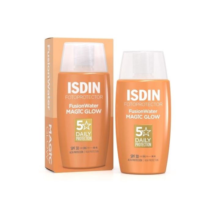 Isdin Fusion Water Magic Glow SPF30 è un fotoprotettore viso dalla texture ultraleggera con fase esterna acquosa con effetto illuminante e fattore di protezione SPF30.