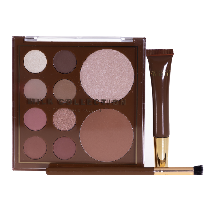 In questo set puoi trovare una palette di ombretti con diverse tonalità, un bronzer per evidenziare e definire il viso e un illuminante per donare un effetto luminoso. Tutto in una palette. Insieme anche adun primer affinché il trucco duri più a lungo ed esalti la luminosità del viso. E infine un pennello per poter applicare correttamente gli ombretti.