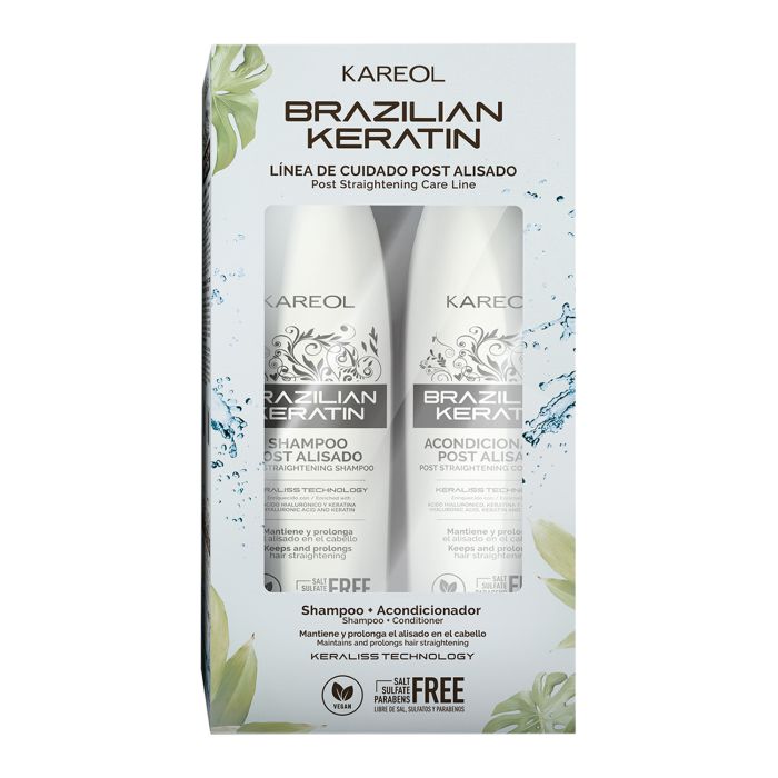 Brazilian Keratin Kit Post Stiratura è una linea specializzata nella cura dei capelli lisci e post lisciatura. La sua esclusiva Tecnologia Keraliss, una combinazione di Acido Ialuronico, Cheratina e siliconi leviganti, fornisce un'idratazione profonda, restituisce forza e ripristina le imperfezioni del capello, aiutando a mantenere la lisciatura più a lungo. Il risultato: capelli senza crespo, morbidi, naturalmente mossi e più lisci più a lungo.