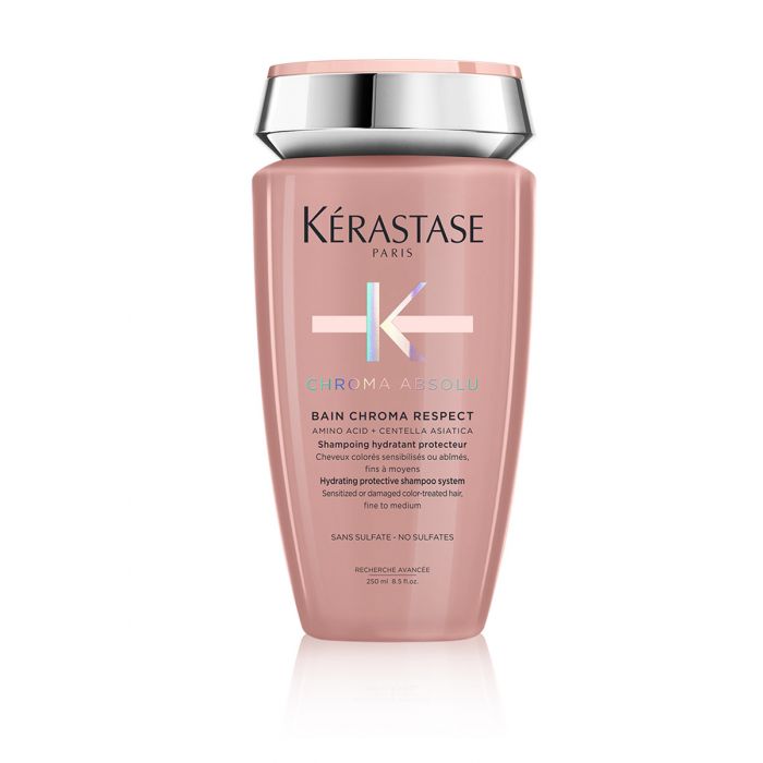 Bain Chroma Respect è uno shampoo protettivo idratante per capelli sensibilizzati e/o danneggiati di colore da fine a medio. La sua texture cremosa in gel rosa pallido idrata intensamente e si prende cura della fibra, rispettando e preservando il colore senza trascinarlo.