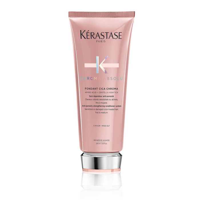 Fondant Cica Chroma è un balsamo riparatore e antiporosità per capelli sensibilizzati e/o danneggiati. per capelli sensibilizzati e/o danneggiati di colore da fine a medio. capelli danneggiati. La formula potente e leggera penetra nella fibra per ripristinare la forza, l'aspetto sano e l'idratazione. forza, aspetto sano e idratazione intensa. Aiuta a preservare il colore.