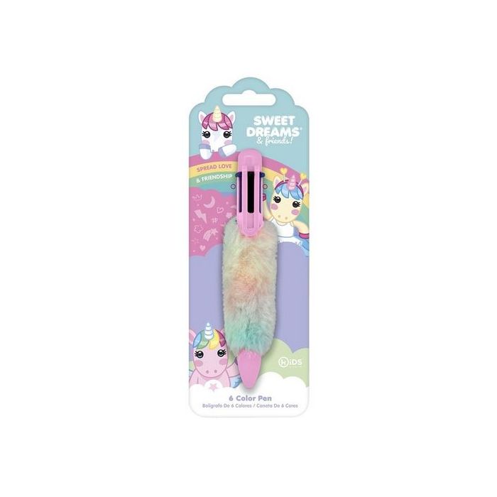 Penna 6 colori in uno con peli morbidi e multicolore come l'acrobaleno.