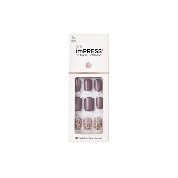 Leunghie finte Kiss imPRESS Press-On Manicure comprendono 30 unghie, con 6 unghie decorate. Lunghezza ridotta e forma quadrata.