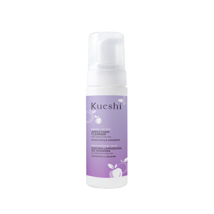 LaSchiuma detergente delicata alla mela di KUESHI pulisce in profondità, rimuovendo tracce di make-up, sudore, sebo, cellule morte e sporco da inquinamento ambientale.