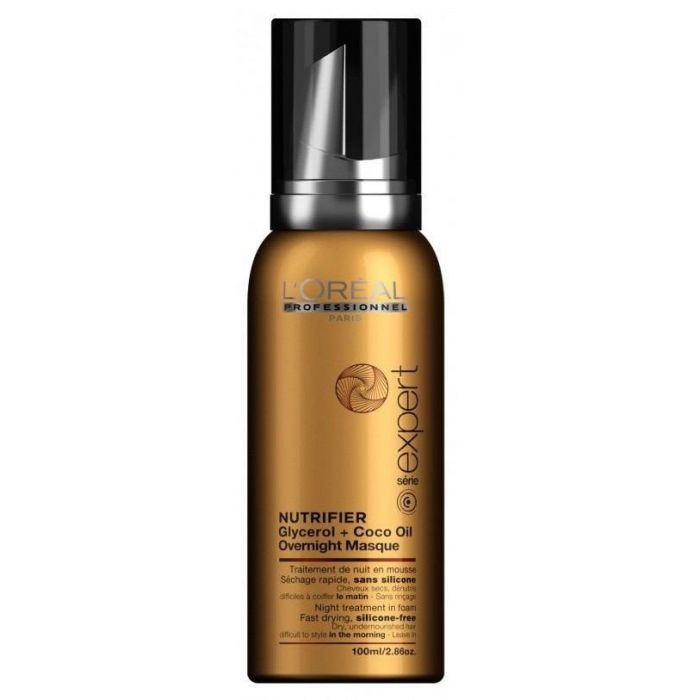 L'OREAL NUTRIFIER OVERNIGHT MASK: maschera notturna per capelli secchi, con glicerolo e olio di cocco. Il glicerolo aiuta a idratare e nutrire, mentre l'olio di cocco dona lucentezza ai capelli.