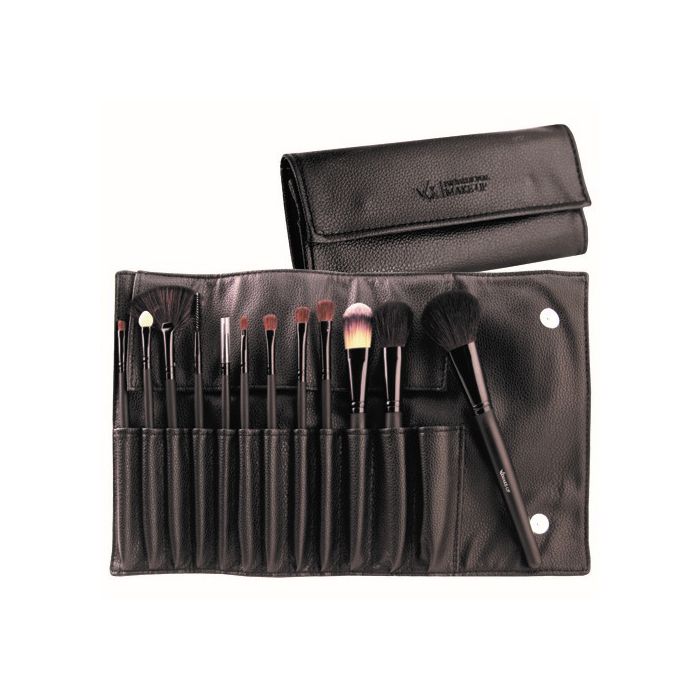 Set di pennelli per make-up con cofanetto in similpelle nera. Include pennelli essenziali e pennelli per viso e occhi, con fibre morbide che garantiscono un finish professionale a qualsiasi look.