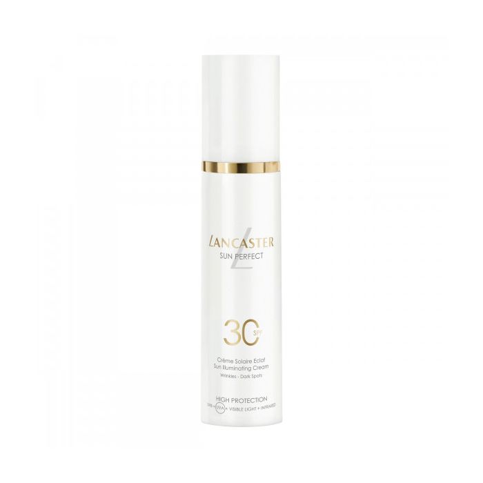 La formula evoluta di Sun Perfect Sun Illuminating Cream SPF offre l'esclusiva e avanzata tecnologia Full Light di Lancaster, che agisce contro il 100% dello spettro solare*, insieme a una tecnologia antietà, un sistema di riparazione solare di derivazione naturale e un complesso potenziatore della luminosità. .