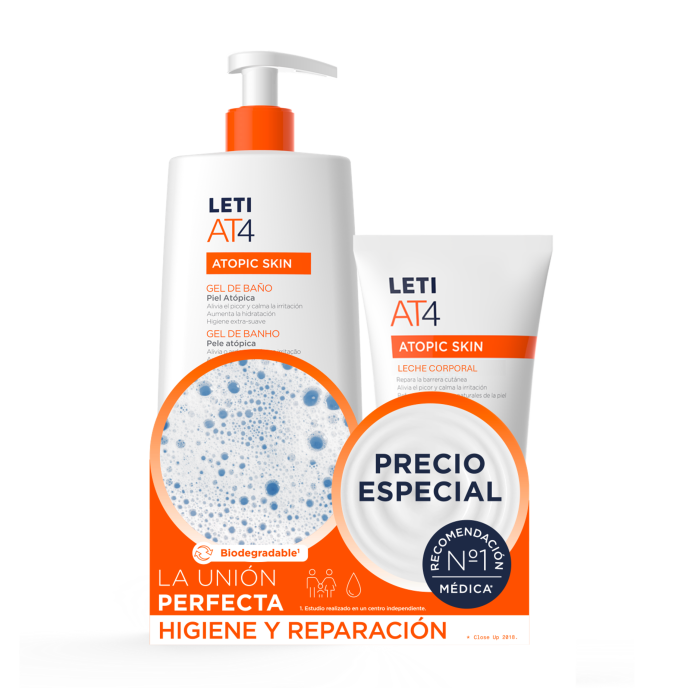 Leti At4 Pack Gel da bagno + Latte corpo per pelli atopiche