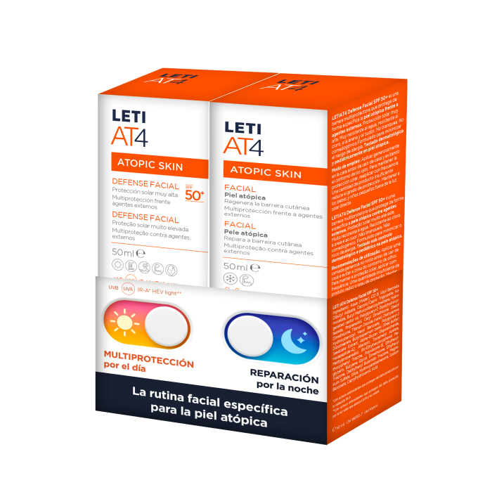 Proteggete la pelle atopica durante il giorno con Leti AT4 Defense Facial SPF 50+.