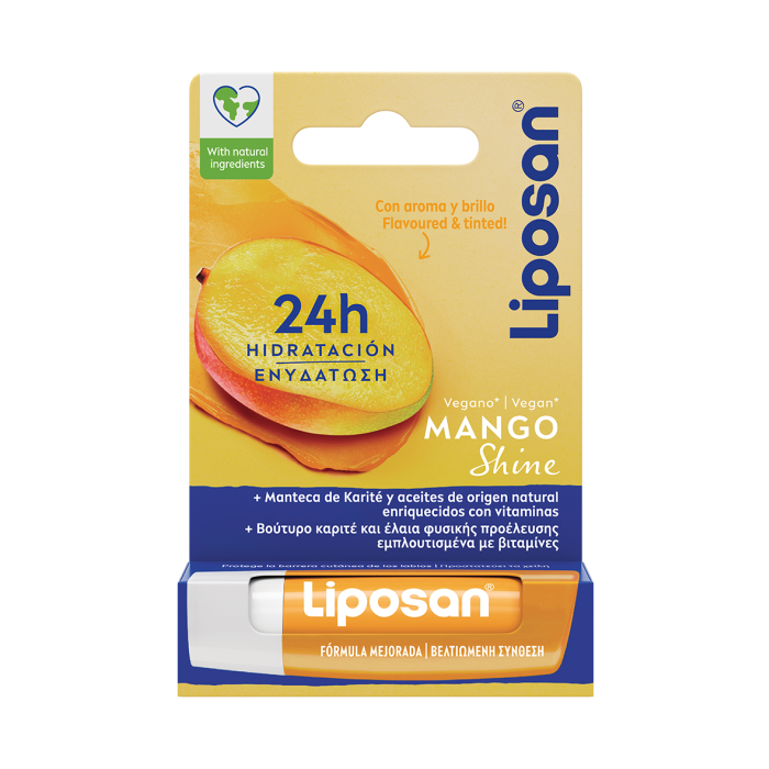 Liposan® Mango Shine. Con un delizioso profumo di mango, dona alle labbra una sottile lucentezza e le protegge da freddo, vento e secchezza.