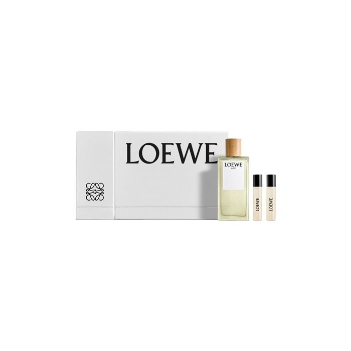 Questo esclusivo Cofanetto contiene: Loewe Aire EDT 100ml, una fiala da 10ml abbinata e una fiala da 10ml di un profumo complementare, Loewe Agua EDT.