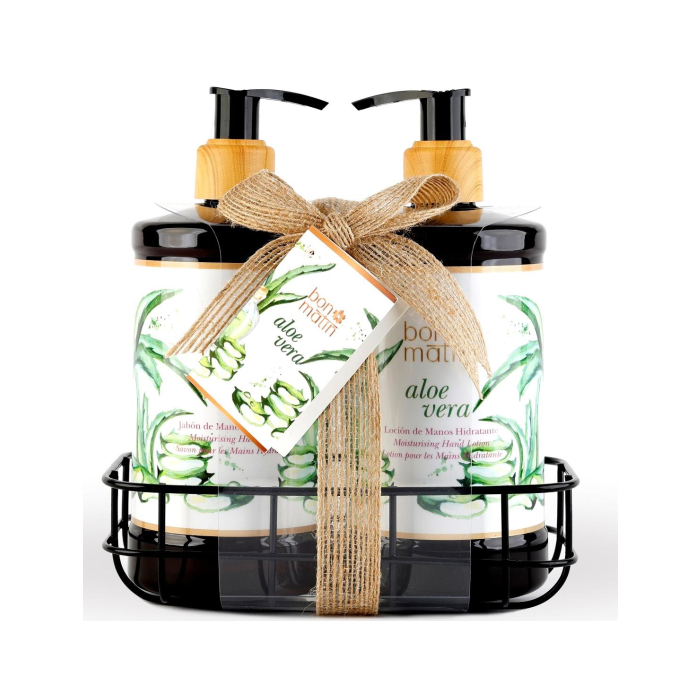Elevate la vostra routine quotidiana con questo elegante set Bon Matin per la cura delle mani, presentato in un moderno vassoio di metallo nero perfetto per il bagno.