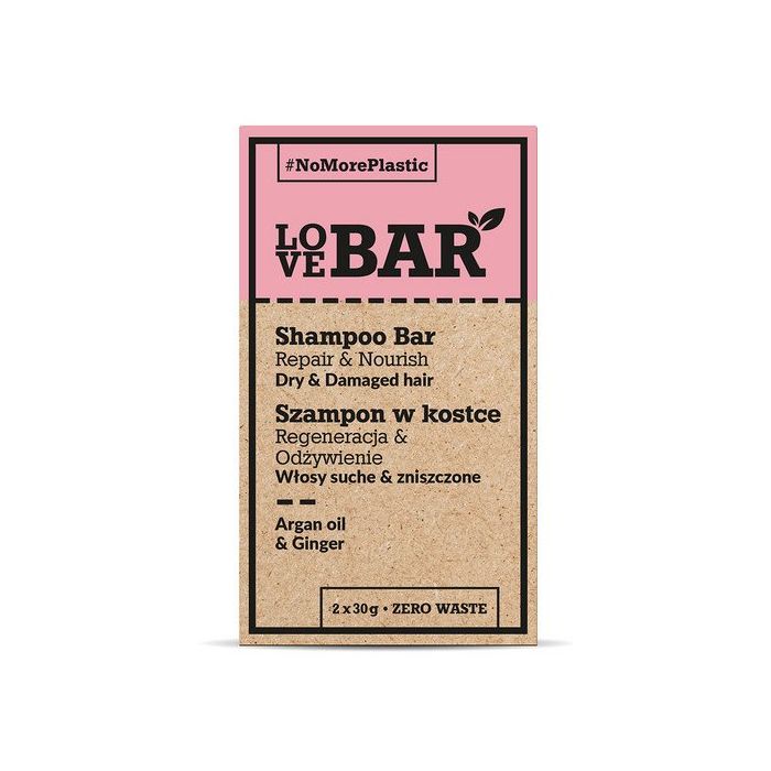 LOVEBAR Shampoo Repair & Nourish Olio di Argan e Jengibre aiuta a ridurre il consumo di acqua, con lo 0% di plastica, lo 0% di sostanze chimiche complesse, ma il 100% di amore per la terra.