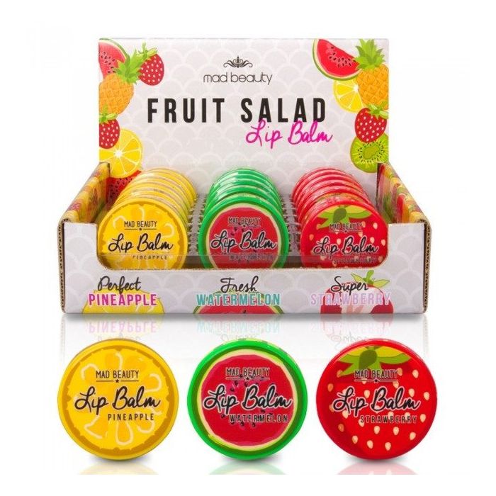 Fruity Lip Balm di Mad Beauty per mantenere le labbra sempre idratate e brillanti con un morbido profumo fruttato.