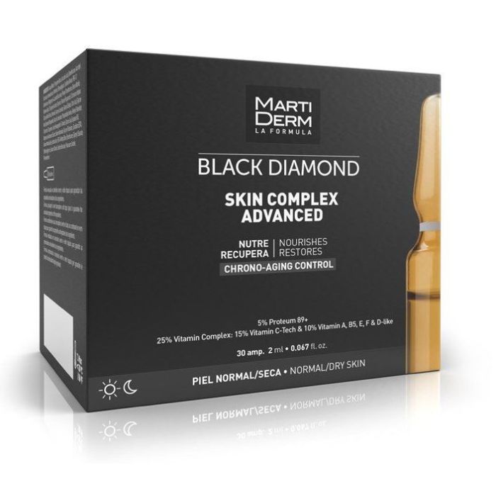 Black Diamond Skin Complex Fiale Antirughe di Martiderm è un trattamento antietà indicato per pelli normali e secche, con proprietà idratanti, rassodanti, antiossidanti e riparatrici che aiutano a ripristinare l’energia del viso e a ridurre l’invecchiamento cutaneo.