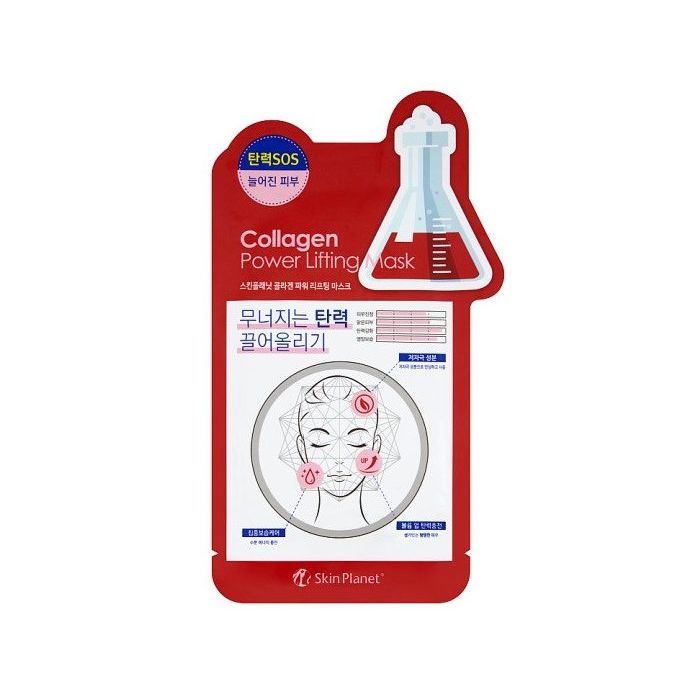 Collagen Power Lifting Maschera per il viso Skin Planet: È una maschera per il viso che nutre e idrata la pelle delicata, donandole un aspetto più liscio, curato e bello. Contiene una soluzione di collagene idrolizzato che aiuta a mantenere la pelle più idratata, giovane e levigata, donandole un aspetto radioso.