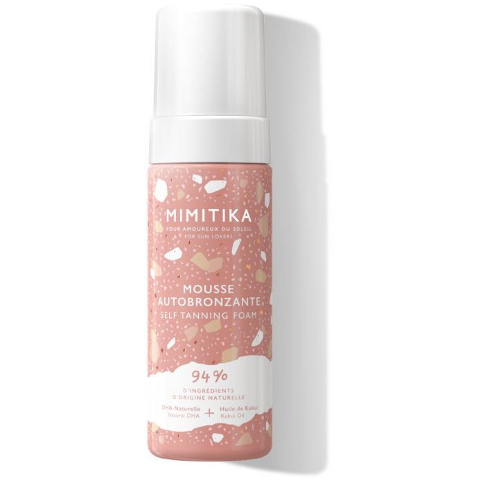 MIMITIKA Schiuma autoabbronzante è formulata con il 94% di ingredienti naturali. Idrata e lascia la pelle morbida.