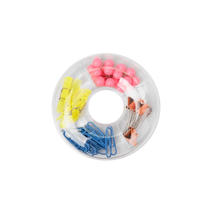 La custodia trasparente con scomparti separati comprende 49 pezzi con diversi accessori per cancelleria.