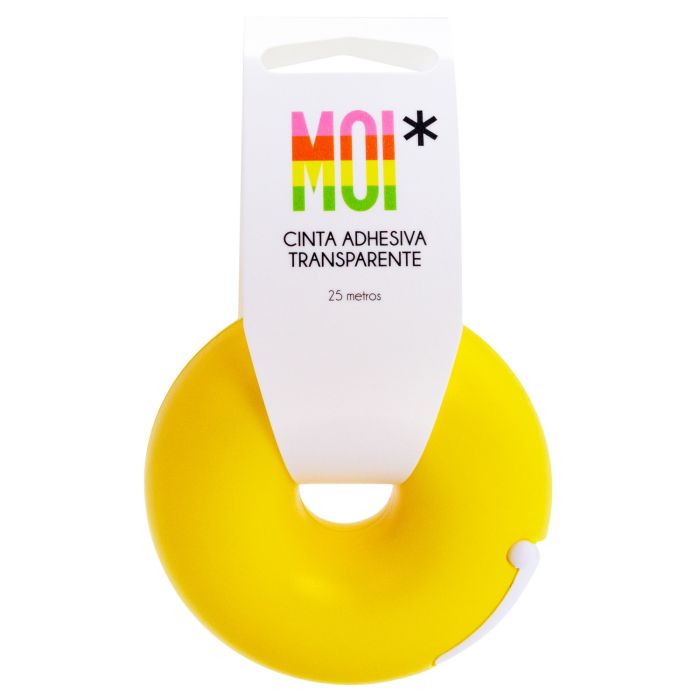 Nastro adesivo in confezione MOI* è un nastro trasparente con dispenser rotondo ricaricabile.