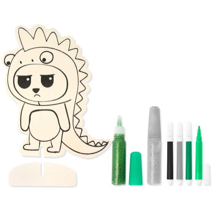 Realizzato in legno naturale, può essere decorato a piacere con pennarelli e glitter inclusi nel set.