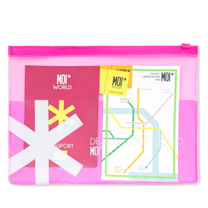 Il portadocumenti MOI* è un beauty case rosa con diversi scomparti per passaporto, carta d’imbarco, mappe e zip con chiusura zip, perfetto per organizzare tutti i documenti di viaggio senza dimenticarti nulla.