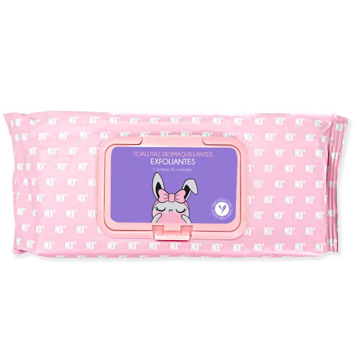 Set di 40 salviette struccanti esfolianti che detergono delicatamente il viso.
