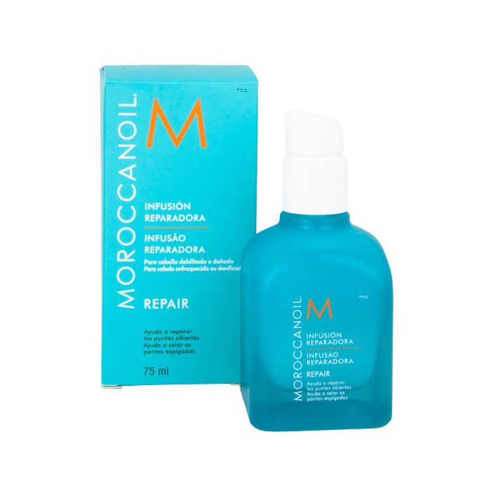 Moroccanoil Repair Infusion riduce i segni visibili dei danni, come le doppie punte e i capelli secchi, combatte il crespo e previene ulteriori danni. Una miscela di olio di argan ed estratti di baobab, ricca di antiossidanti e aminoacidi, trasforma radicalmente le doppie punte in capelli lisci come la seta.