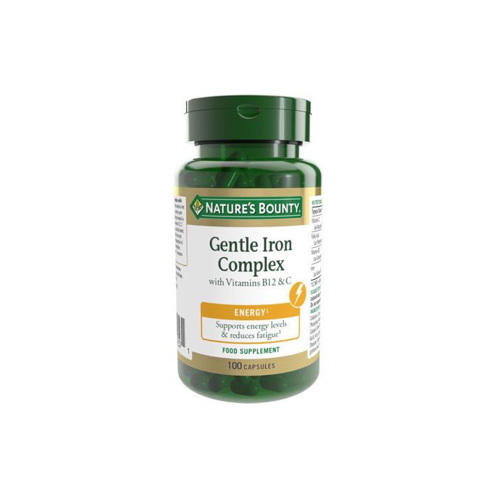 Il integratori alimentari Ferro Gentle Complex con vitamine C & B12 Nature’s Bounty® contiene ferro bisglicinato, una forma di ferro morbido per l’apparato digerente.