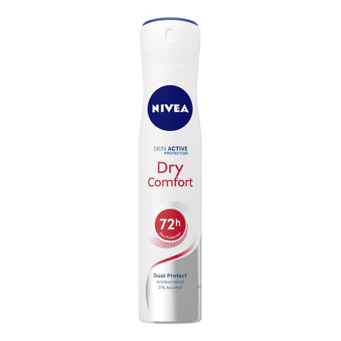 Il Deodorante Spray Dry Comfort offre un'agra sensazione di ascelle asciutte e cura della pelle per tutto il giorno.