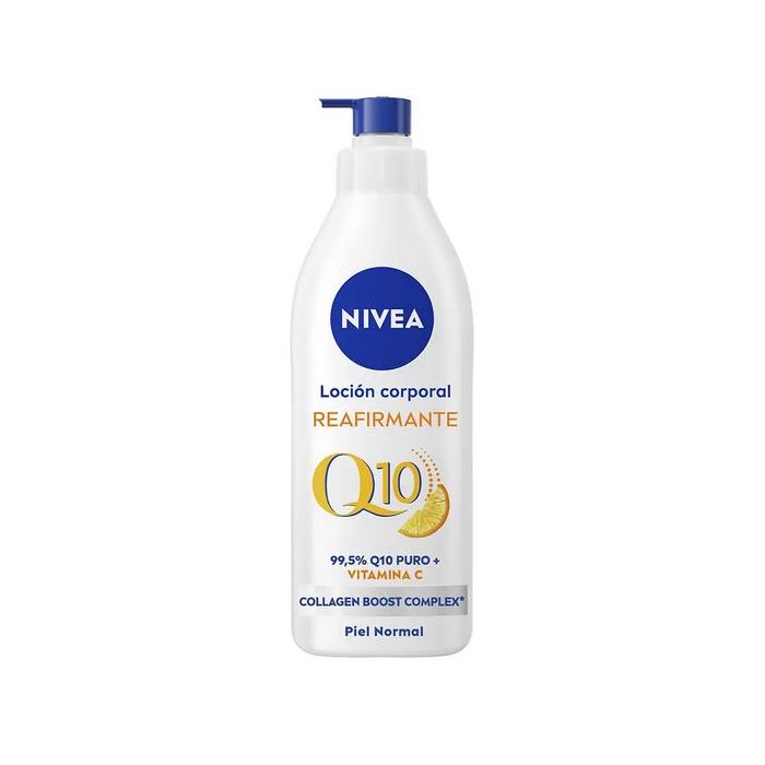 NIVEA Q10 + Vitamina C Lozione Corpo Rassodante Pelle Normale è una lozione corpo studiata per migliorare la compattezza e l'elasticità della pelle.