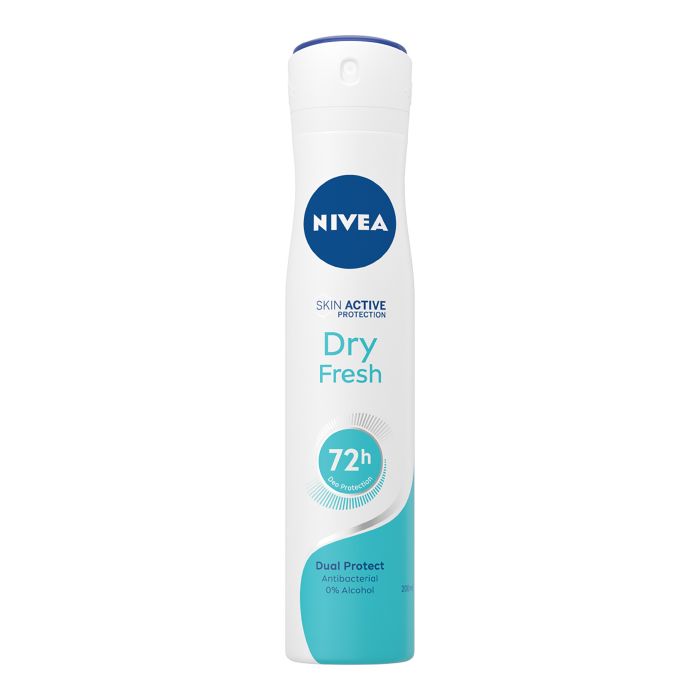 Nivea Dry Fresh Spray: ascelle asciutte e curate per tutto il giorno. La formula, testata nella vita reale, offre una protezione affidabile contro il sudore e gli odori corporei per 48 ore, che insieme alla fresca fragranza dà una sensazione di pulizia. Inoltre, il formato spray lascia una sensazione rinfrescante sulla pelle con un profumo delicato e di lunga durata. Testato nella vita reale. Applicare lo spray da una distanza di 15 cm. Lasciare asciugare completamente. Evitare il contatto con gli occhi. Non applicare sulla pelle irritata o ferita.