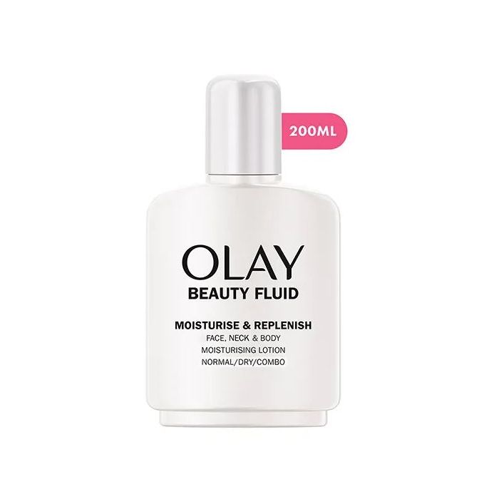 Olay Beauty Fluid Viso, Collo e Décolleté Lotion è il classico della bellezza per un'idratazione leggera di 24 ore, troppo bello per non essere usato ogni giorno.